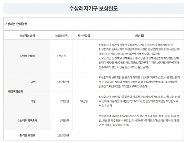 책임보험 수준 보장에 불과한 수상레저보험, 종합보험 도입이 시급