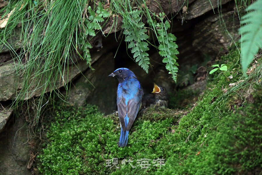 아침 일찍부터 둥지를 관찰하는 중에 어미 큰유리새가 나타나지 않는 사실을 알게 되었다. 아비 새 수컷은 혼자서 바쁘게 곤충과 땅강아지 등 새끼 새에게 먹이를 물어다 나르고 배설물을 치워내느라 매우 바쁘게 움직였다. 어미 새는 오후 시간에도 나타나지 않았다. 아비 새는 바쁘게 먹이를 나르고 어미 새 없는 새끼 새를 안전하게 키우는 노력을 아끼지 않았다.