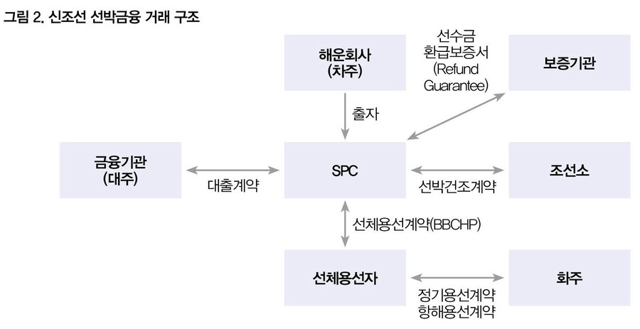 그 이유는 이미 금융사들이 △실무상 후판 등 원자재를 저렴할 때 미리 구입하기 때문에 건조 선박에 사용한 원자재가 선수금으로 구입한 것이 아니므로 선수금이 해당 선박 담보로 포섭되지 않는 경우, △선수금으로 밀린 외상 대금을 갚거나 인건비에 사용하므로 대상 선박에 선수금이 투입되지 않은 경우, △헤비테일 방식으로 계약하다 보니 자체 자금 조달을 통해 선박을 건조해야 해서 선수금 담보가 큰 의미 없는 경우, △선박 건조비 결제방식을 5회 균등 분할로 계약하고, 대상선박을 위한 원자재가 구입됐음에도 불구하고, 낮은 건조비로 계약이 체결돼 수익성이 떨어지고, 조선소 재무상태 악화로 이어지는 경우 등을 경험했기 때문이라고 설명했다.