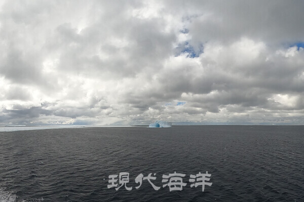오전에 촬영했다. 어제까지의 부빙과는 다른 양상이다. 어제의 부빙은 조각 조각 떠다니는 얼음이었다면, 오늘부터는 바다 전체가 하나의 빙판이다. 수평선(빙평선이라 불러야 할 듯하다)까지 대략 10해리만 잡아도 반지름 18km의 아이스링크나 스키장 한 가운데 있는 기분이다. 이제는 웬만한 섬 크기의 빙산도 자주 목격된다.