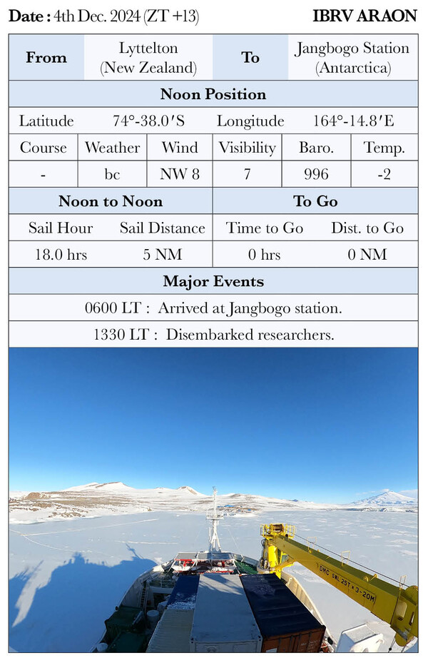 오전 9시. 한국시각 오전 5시. 그동안 먹통이던 인터넷이 느리게 접속되었다. 이틀 만에 접한 한국의 소식은 여기 남극의 광경보다도 놀라게 했다. 비상 계엄령 선포. 국회에 무장한 공수부대가 헬기로 진입. 2시간 반 만에 국회의 계엄 해제안 결의. 오늘 하루 이모저모 놀라운 일들로 시작된다. 2001년 9.11 테러 당시 칠레 발파라이소에서 하선 예정이었던 나는 비행편이 취소되어 이후 6개월간 배에서 못 내리고 총 1년여 만에 귀국한 경험이 있다. 20일 후 집에는 갈 수 있겠지? 아닌가? 아라온호에 남는 게 나을까?