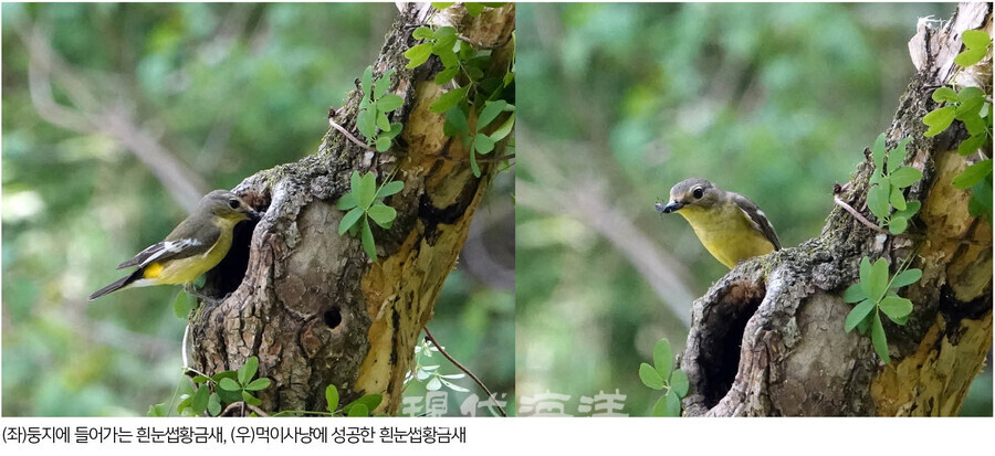 흰눈썹황금새(영명: Yellow-rumped Flycatcher, 몸길이-13cm)는 2천km나 먼 거리의 동남아의 열대우림에서 겨울을 지내고 4월~5월 봄이면 한반도, 몽골 동부 아무르 강변까지 고향의 땅을 찾아오는 민첩하면서도 귀엽은 솔딱새과의 통과새이다.