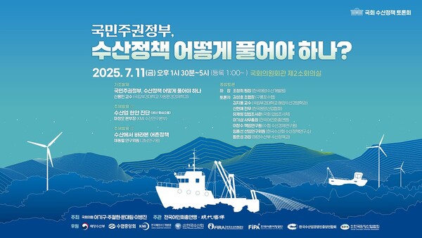 국민주권정부, 수산정책 어떻게 풀어야하나? 수산정책토론회(2027.7.11.국회) 기사입력 2025.07.12 13:21 기자명 현대해양 기자 본문 글씨 줄이기 본문 글씨 키우기 다른 공유 찾기 바로가기