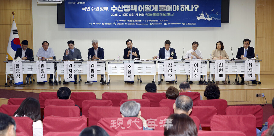 [현대해양] 현대해양이 주관한 「국민주권정부, 수산정책 어떻게 풀어야 하나?」 토론회에서는 조정희 한국해양수산개발원(KMI) 원장이 좌장을 맡아 종합토론을 진행했으며, 학계, 정부, 수산업계, 입법 현장을 대표하는 8인의 전문가들이 참여해 수산업과 어촌의 미래를 둘러싼 심도 깊은 논의를 펼쳤다. 참석자들은 지속 불가능성의 경고 속에서도 전환기의 수산정책 방향을 진단하고, 지속 가능한 산업 생태계 구축을 위한 대안과 전략을 제시하며 다양한 해법을 모색했다.